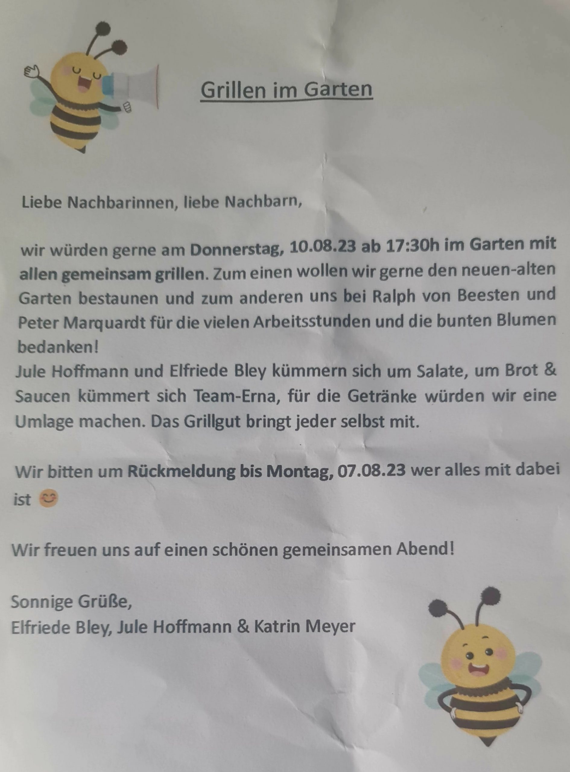 Wir haben uns angemeldet und heute ein nettes Besichtigungsgespräch mit einer Mitarbeiterin des Projekts geführt ;_)