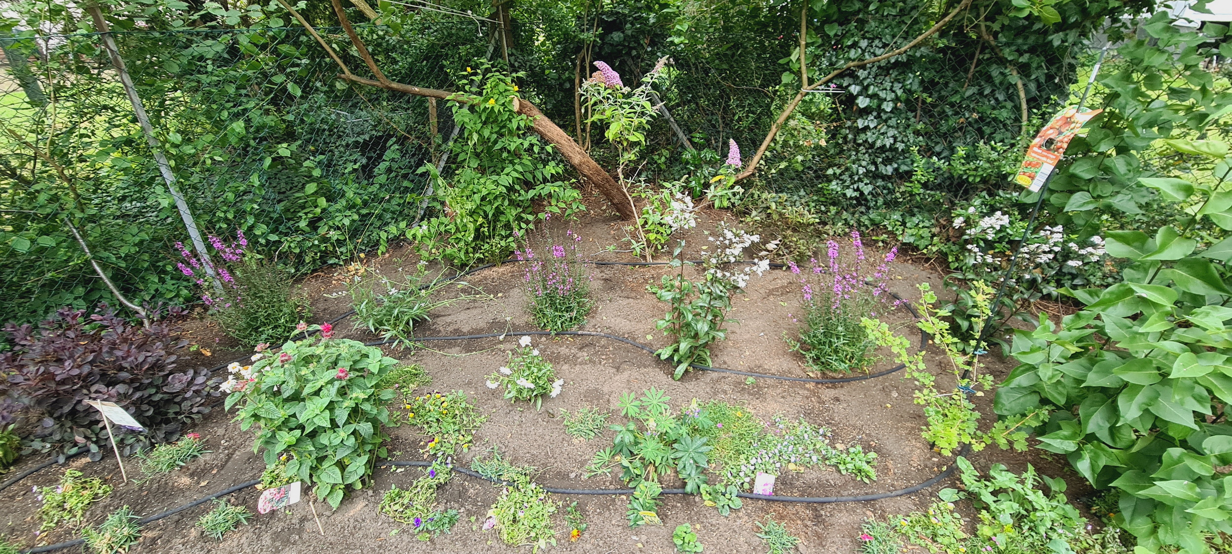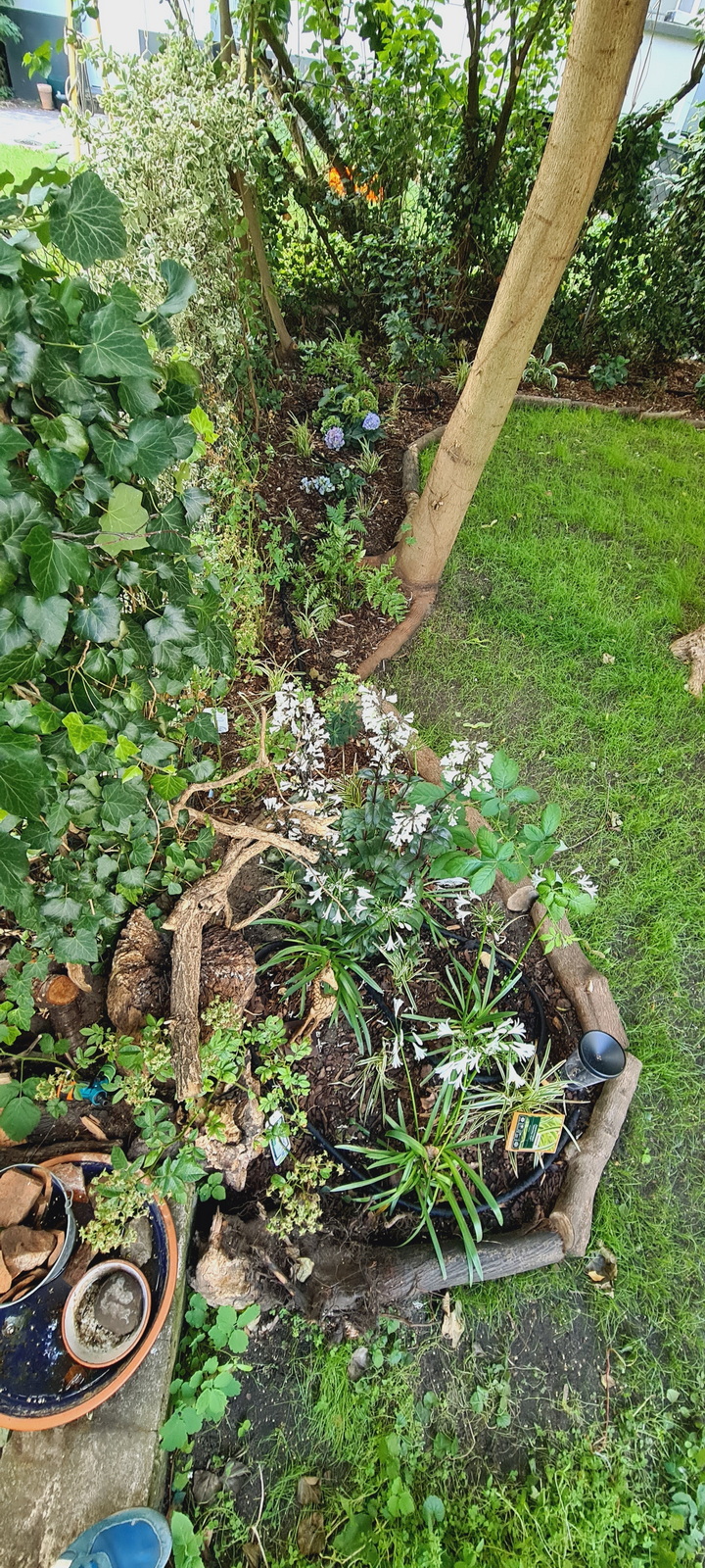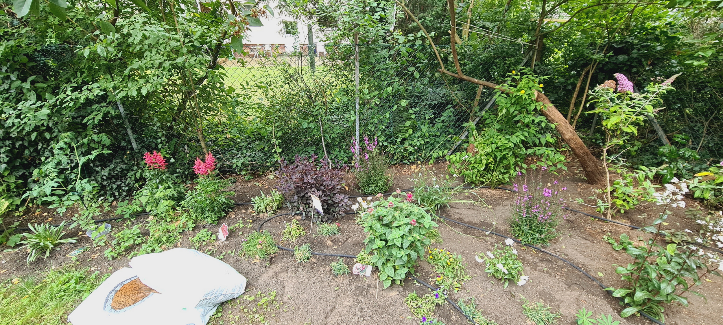 Gestern waren wir noch einmal im Gartencenter Stanze. Bei unserem letzten Besuch waren wir ganz begeistert von der Auswahl und den Preisen. Es ist sogar günstiger als in allen anderen Centern, die wir besucht haben. Eine schöne Indianernessel, Sommerflieder, Gras und 6 größere Stauden ergattert. Dazu noch der Einkauf bei Edelunkraut – sie warfen vor dem Urlaub noch Buchsbäume für 2,5 und Hortensien für 3€ heraus. Alles ist fast eingepflanzt; die Rose meiner Mutter hat einen schönen sonnigen Platz im vorderen Bereich gefunden, den Peter noch etwas erweitert hat. Nur die 4 Buchsbäume – die Frau Hoffmann beigesteuert hat – müssen auf morgen warten. Zugleich haben wir noch die Perlschläuche für den hinteren Bereich verlegt.