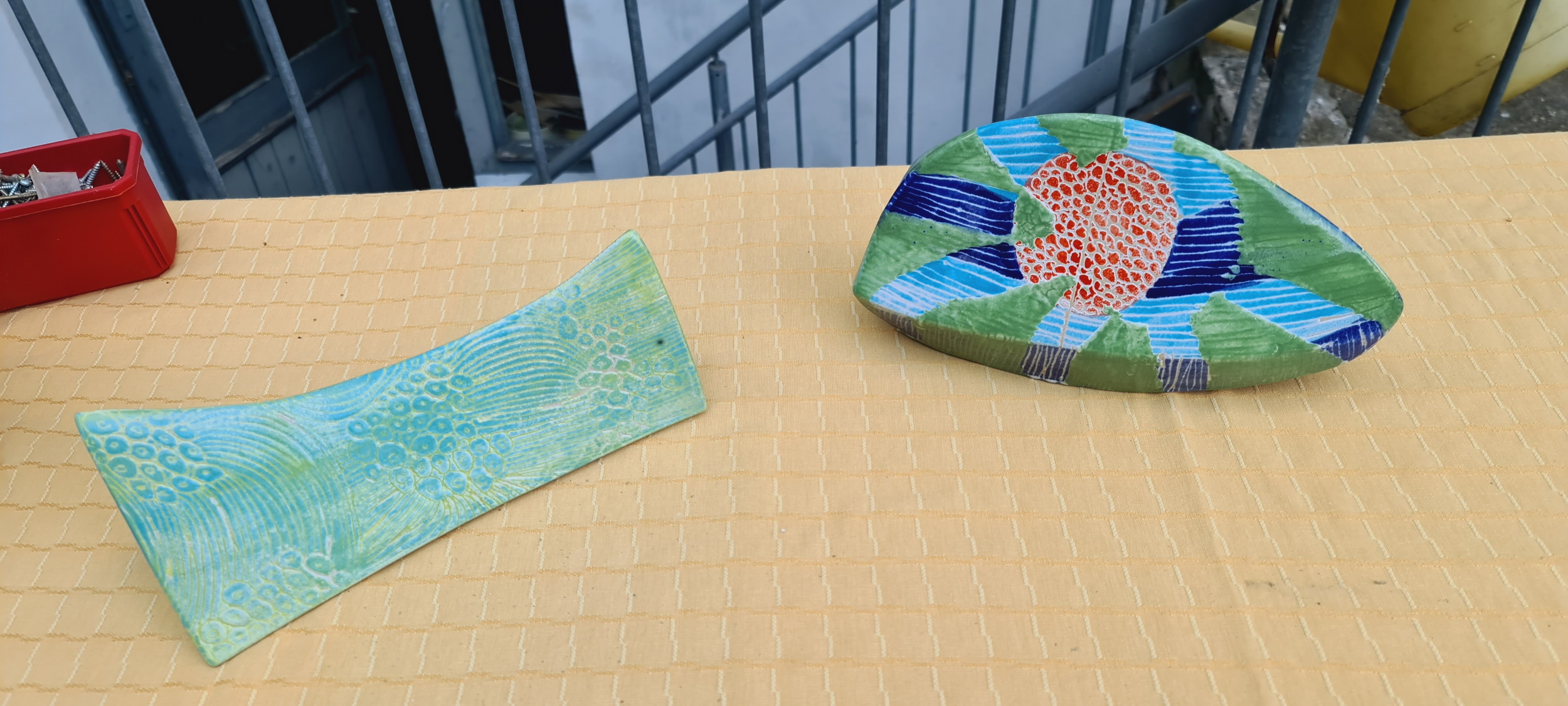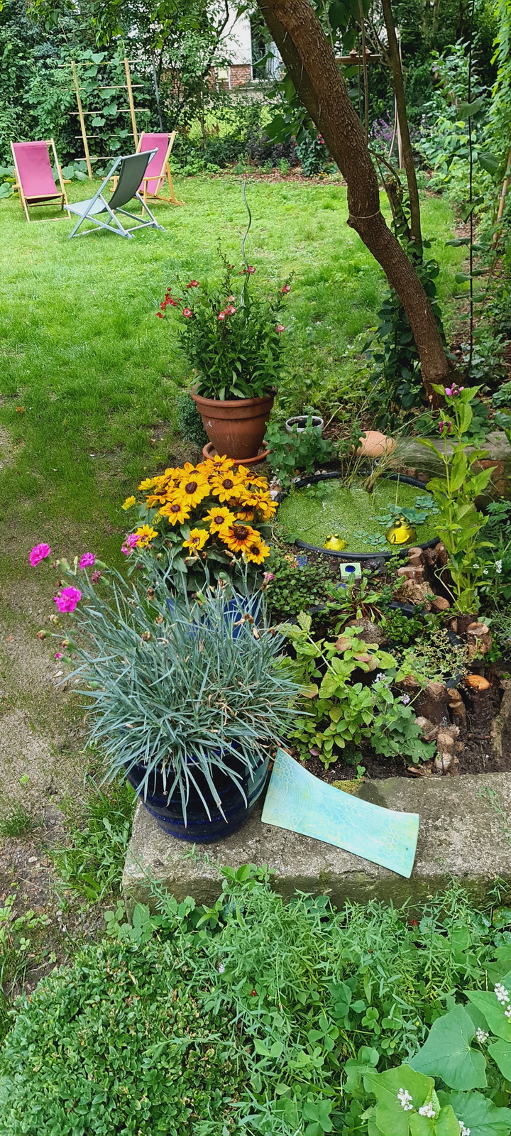 Unser Nachbar Guido Kratz hat uns freundlicherweise einige Stücke seiner Keramikkunst für den Garten gestiftet.